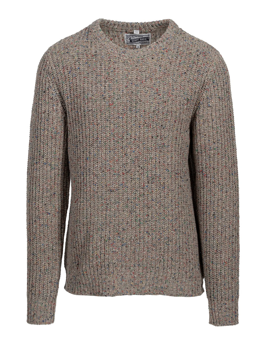 Midweight wool blend Donegal ribbed knit crew neck sweater. 80% Wool, 20% Nylon.