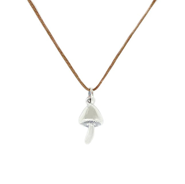 Tiny Charm - Mushroom Necklace (Silver and Black)