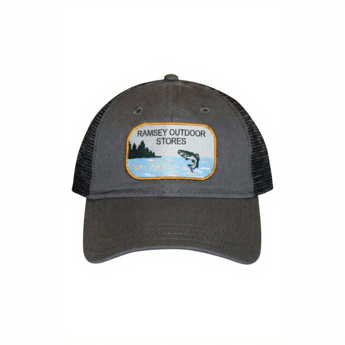Low profile trucker hat with mesh back Classic retro Fish Jump patch - original Ramsey...
