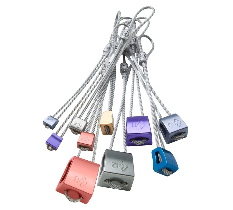 Stoppers No. 4-13 racked on an OvalWire carabiner. Black Diamond Stoppers are an essential for...