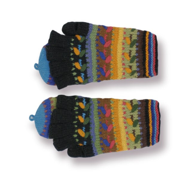 Convertible Mitten switches to fingerless gloves in seconds. Hand Knit with 100% Alpaca Yarns Polyester...