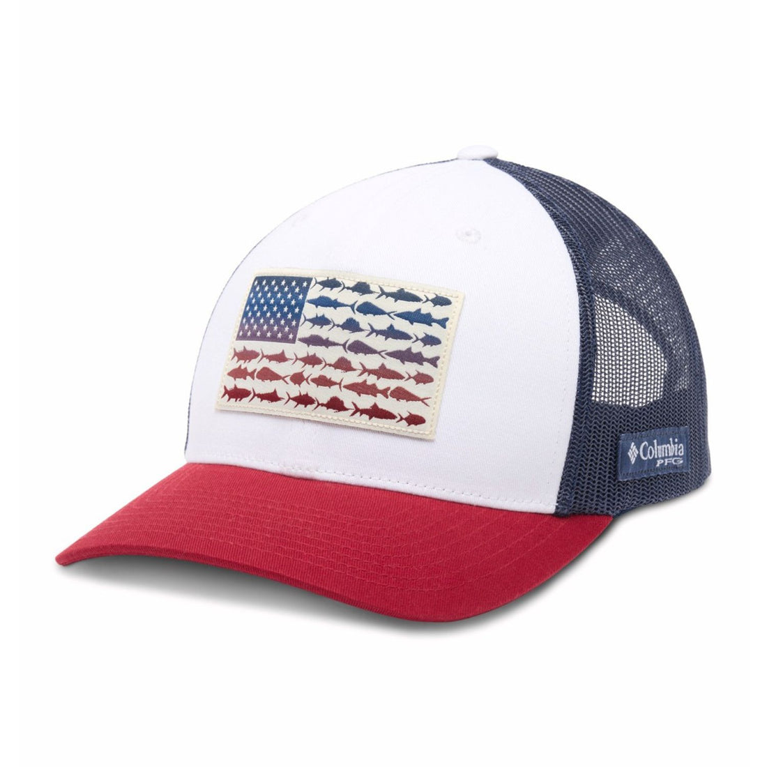 Men's PFG Fish Flag Mesh Snapback Hat - (High Crown) : mens-pfg-fish-flag-mesh-snapback-hat-high-crown-white-beet-nocturnal