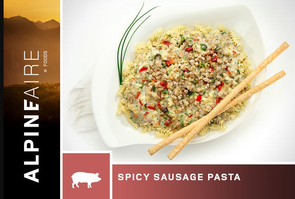 Pasta and pork sausage crumbles in a spicy cream sauce.