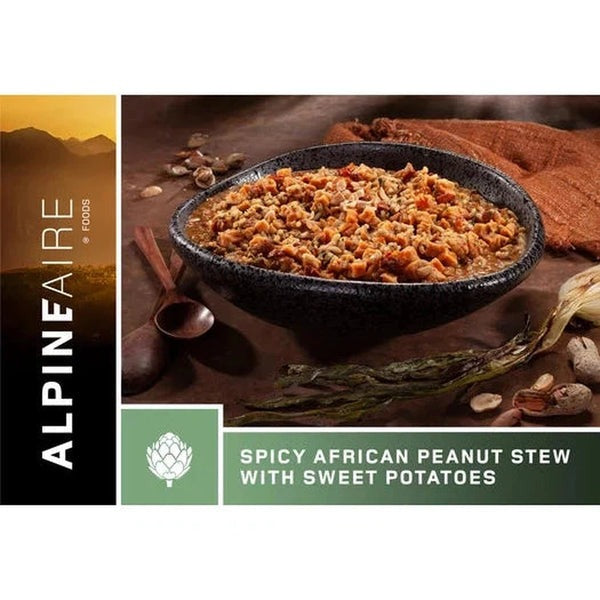 A vegetarian and gluten free backcountry treat, the AlpineAire Spicy African Peanut Stew with Sweet...