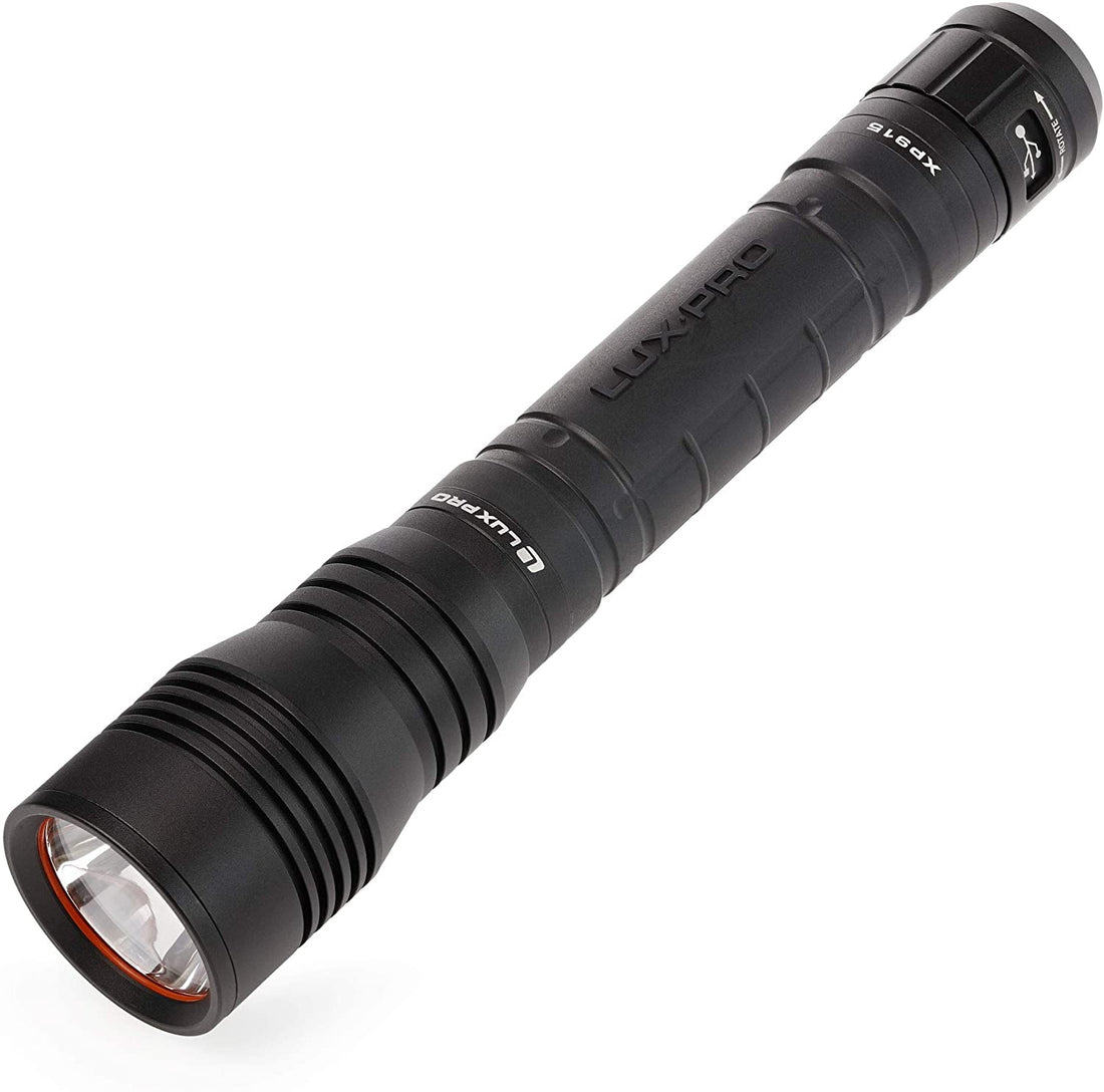 Max Lumen: 900Max Run Time: 8.25hBattery: 2000mAh 3.7V or 3 AAAModel: XP1105 The Pro Series LUXPRO XP1105 Rechargeable Flashlight...