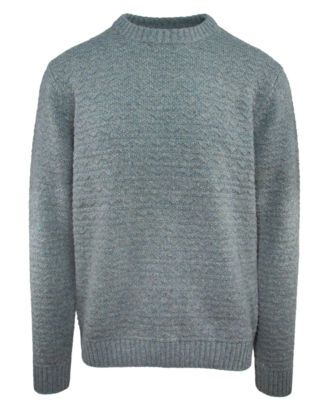 Midweight wool blend Donegal ribbed knit crew neck sweater. 80% Wool, 20% Nylon.