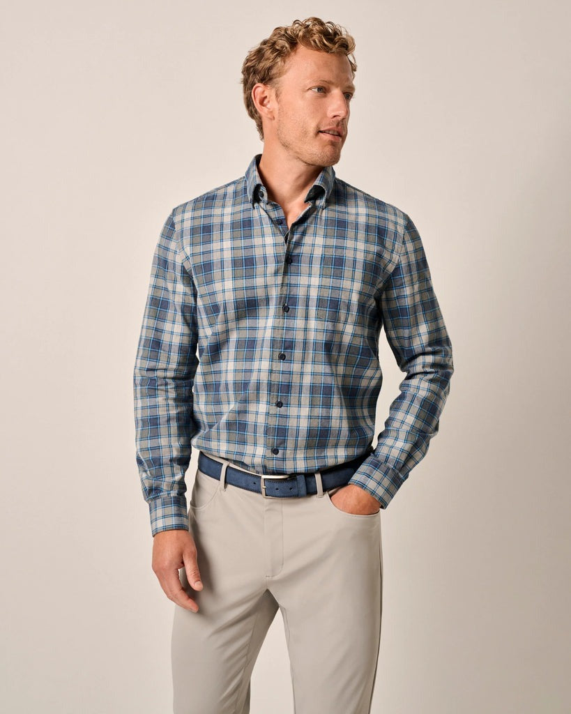 Tucked Cotton Blend Button Up - Benjamin : tucked-cotton-blend-button-up-benjamin-heather-grey