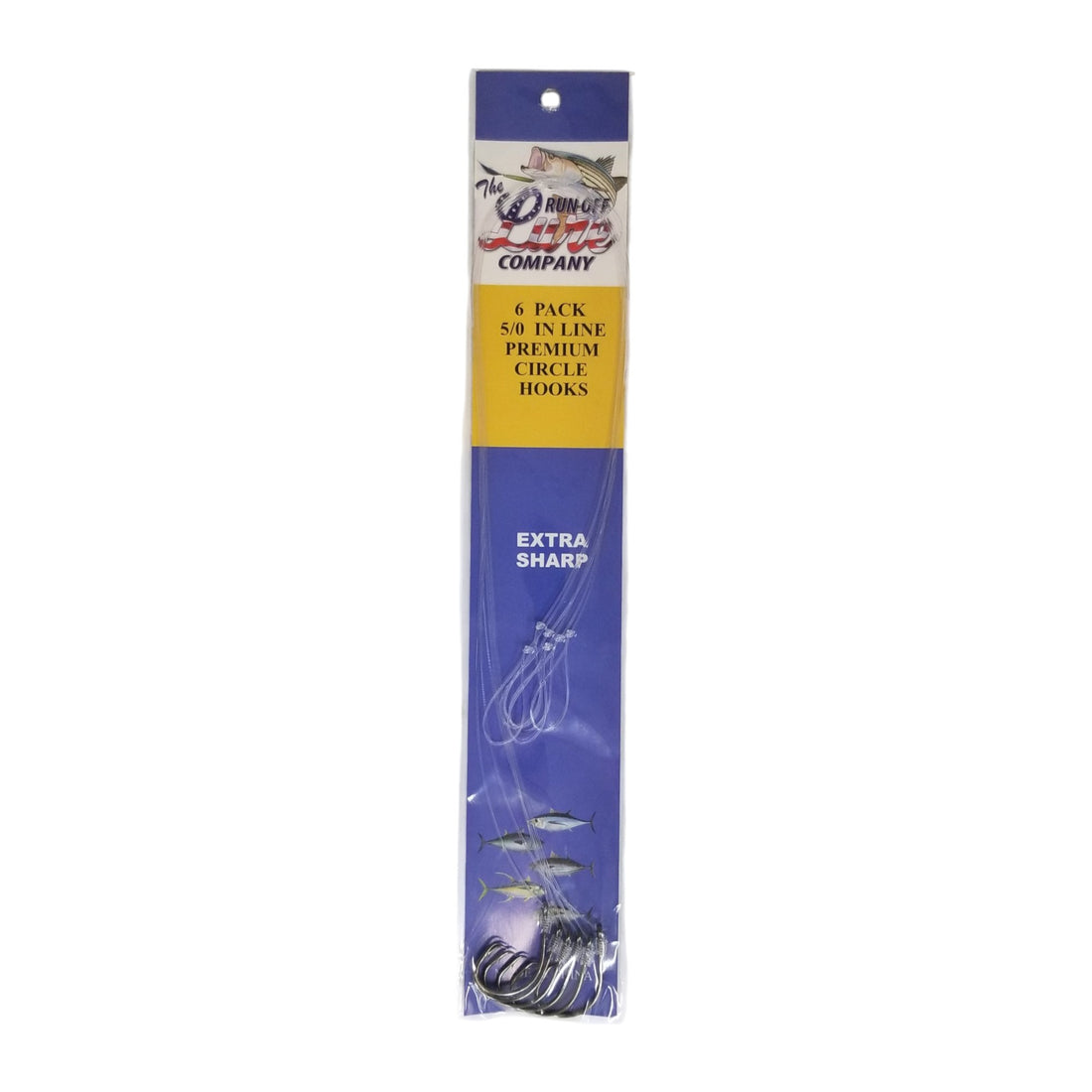 The Run Off Lures Inline Premium Snelled Circle Hook features a size 5/0 circle hook....