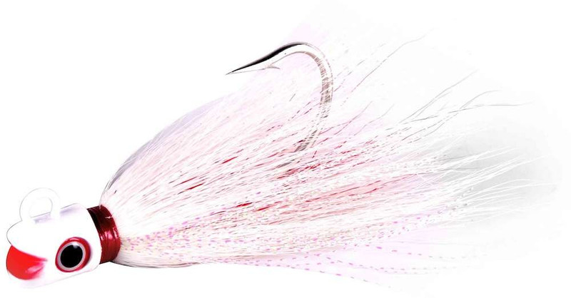 The Mustad Big Eye Bucktail Jig weighs 1/2 oz. and is built on a 32824NP-BN...