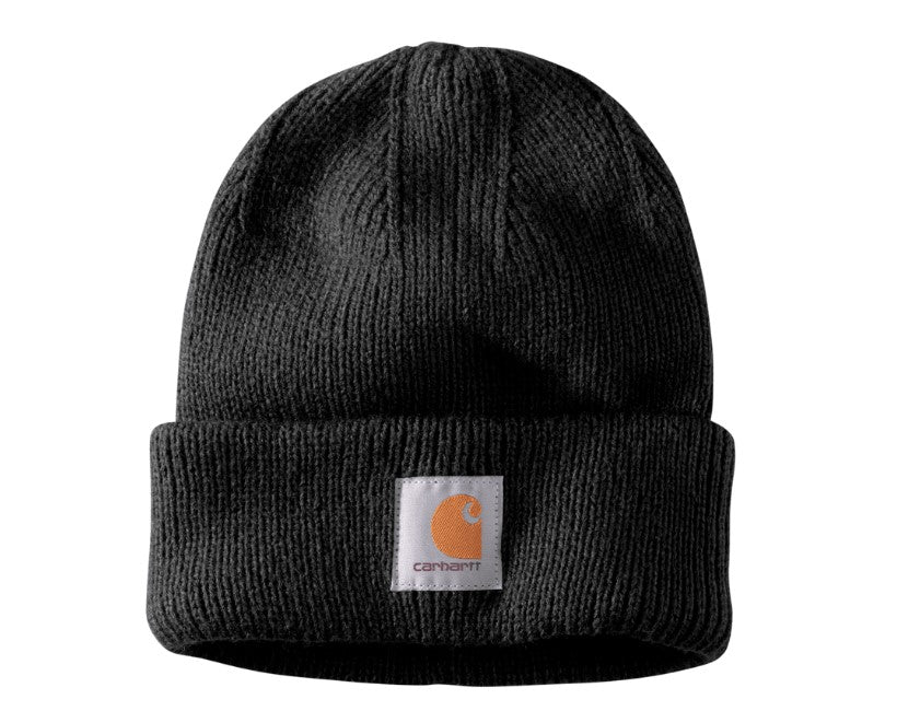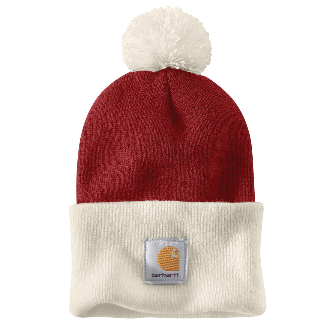 100% acrylic rib knit with pom-pom Carhartt patch label sewn on front Made in USA...