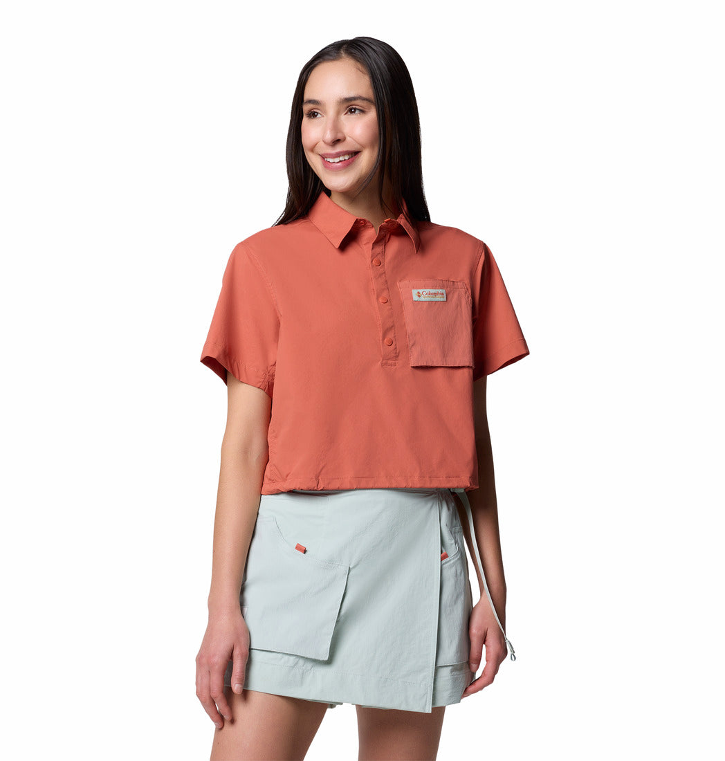 Women's Cove Beach Woven Cropped Short Sleeve Shirt