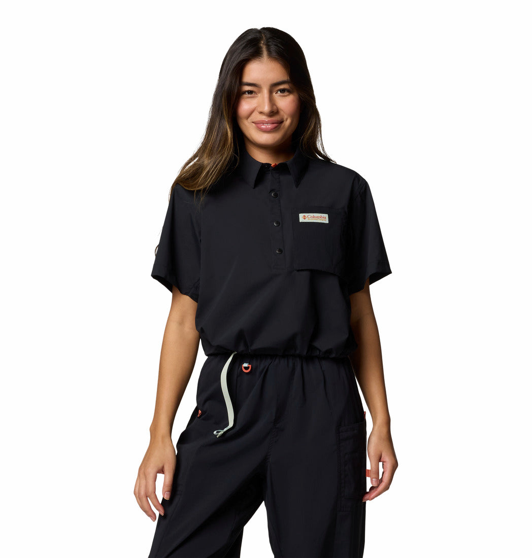 Women's Cove Beach Woven Cropped Short Sleeve Shirt