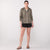 Camel vegan leather/Black white camel stripe Double pocket zip crossbody bag with conversion loops to...