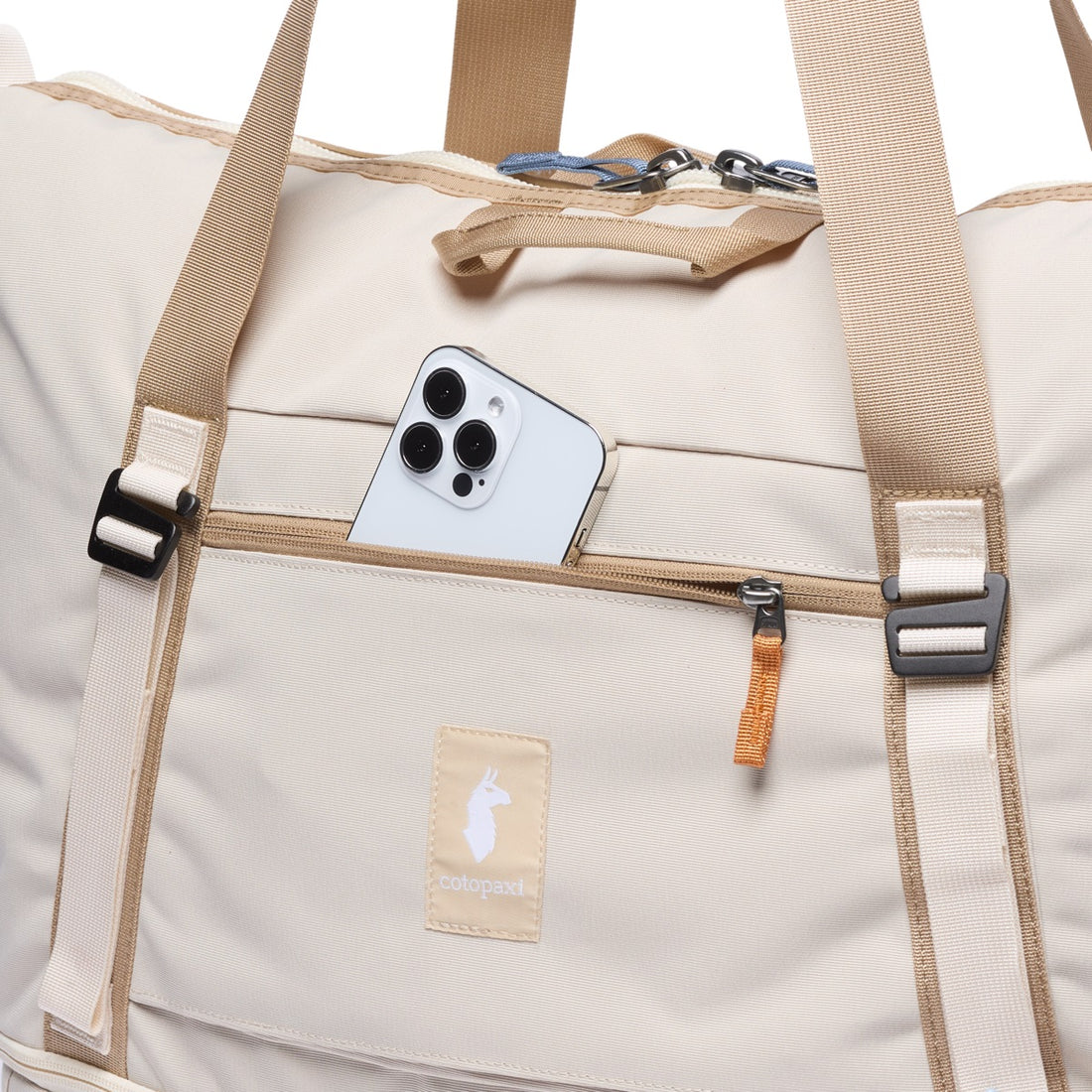 Ivory vegan leather/Whine white taupe stripe Double pocket zip crossbody bag with conversion loops to...