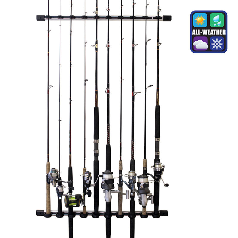 - UNIQUE FISHING ROD STORAGE: Holds up to 10 rod and reel combos where you can adjust the spacing of the rack to suit your rod length (rods not included)