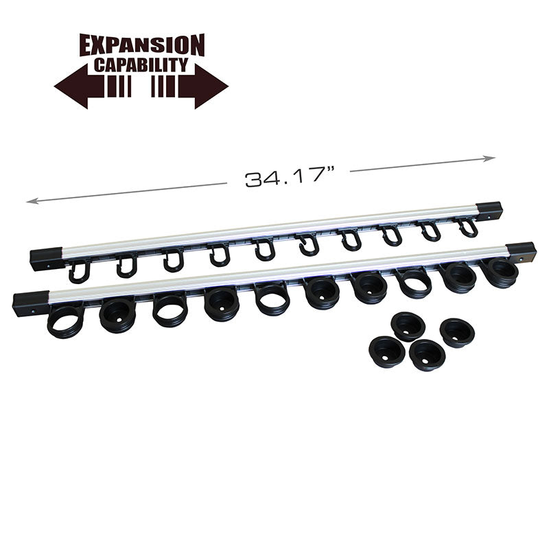 - INNOVATIVE DESIGN: Removable end caps allows for additional 3 in1 Aluminum 10 Rod Racks to be added for 10, 20, or 30 rod storage capacity and “J” Clips holds rods securely