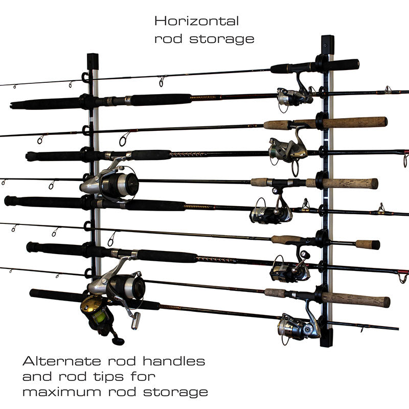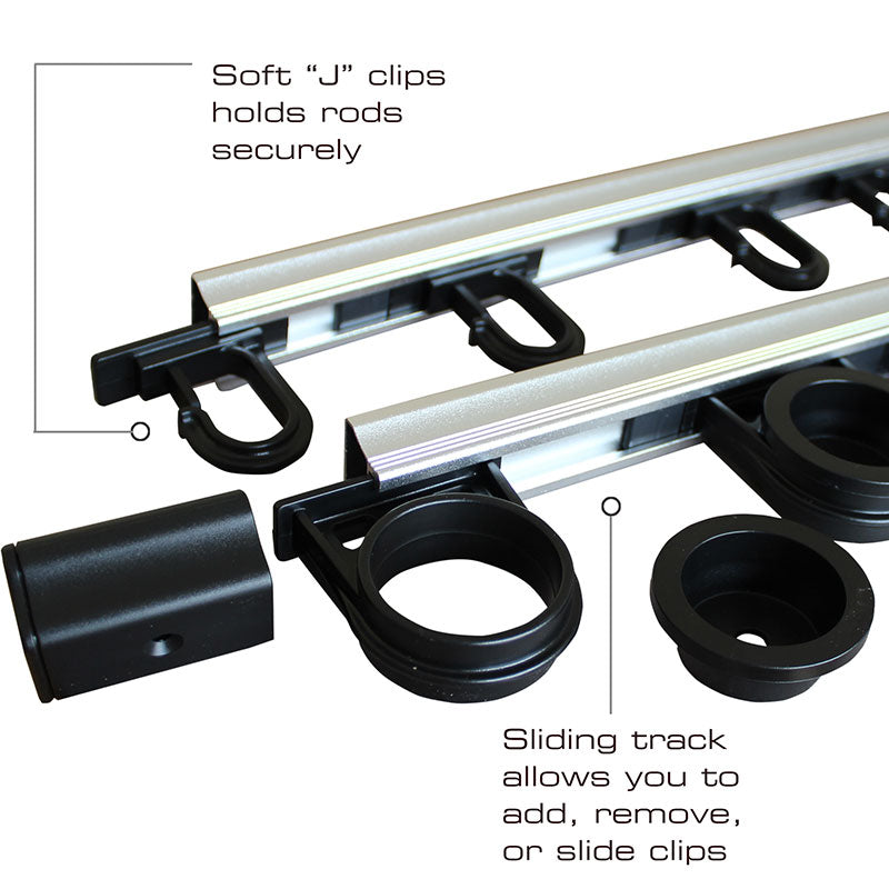- SPACE AND CONVENIENCE: Organize your rod and reel combos on wall or ceiling with heavy duty aluminum sliding track – perfect for home or garage storage