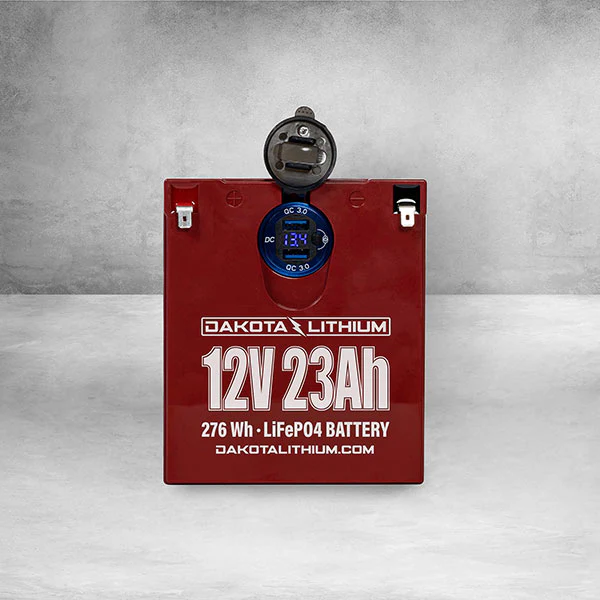 Dakota Lithium 12 Volt 23 packs a big punch in a small package. With both USB 3.0 waterproof plugs, standard F2 Terminals, and a built in volt meter, this LiFePO4 battery gives you the freedom, power, and reliability to #GoFurther and #PlayHarder in the most extreme of conditions. Built from Dakota Lithium’s legendary LiFePO4 cells, this battery has 2X the power, 1/3 the weight and 5X the lifespan of traditional batteries — providing exceptional lifetime value, all backed up by Dakota Lithium’s best in class 11 year warranty.