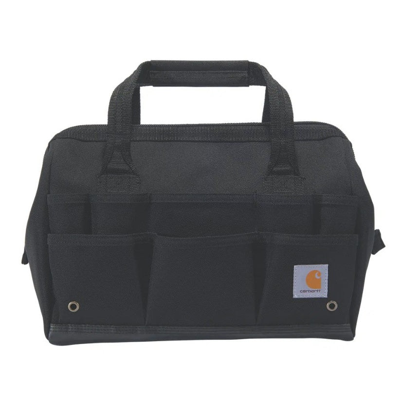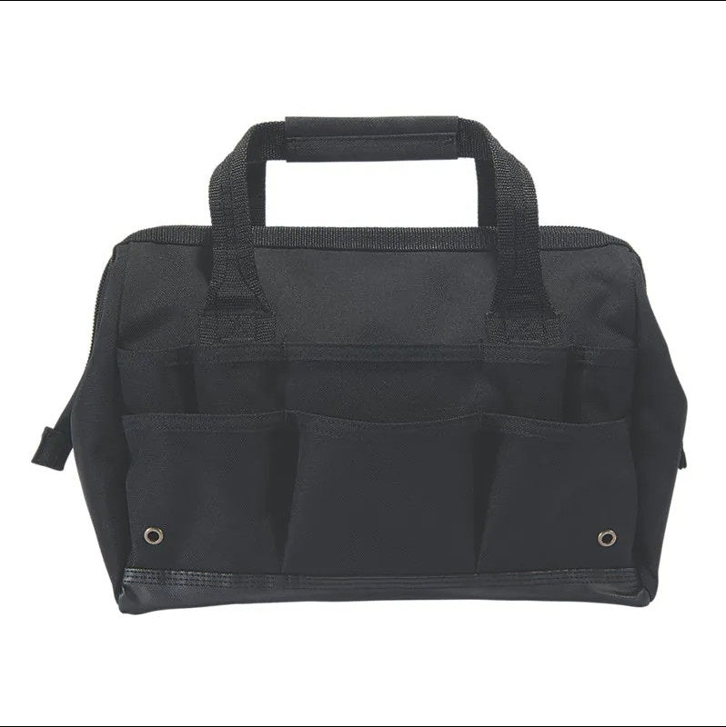 This tool bag makes it easy to find all your gear while you're out in the field. At 14 inches, the main zip compartment is large enough to fit a cordless drill, plus there are 25 total pockets for your hand tools. Built to last, the bag is made of heavy-duty material that stands up to light rain. It has an inner metal frame for some structure and an abrasion-resistant base.