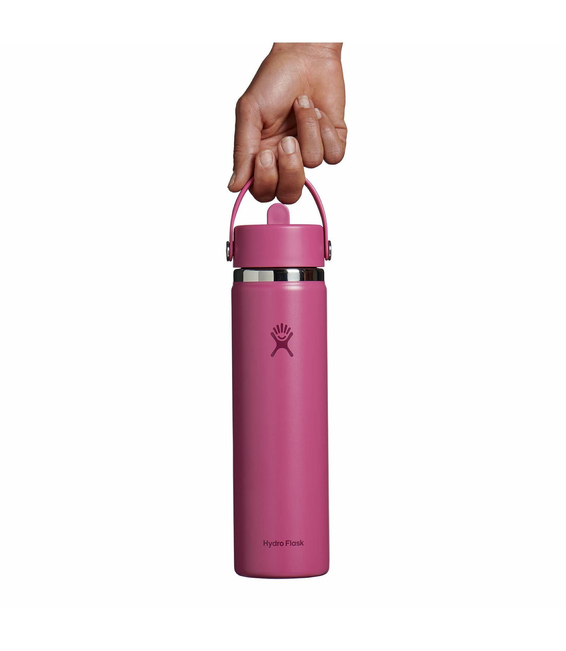 Flip it and sip it with the Hydro Flask 24 oz Wide Mouth Bottle With Flex Straw Cap. With a comfortable, flexible handle, the closeable, leakproof straw cap is easy to open and close with one hand, for on-demand hydration. Double-wall insulation keeps drinks cold up to 24 hours for cool refreshment. The slim design fits most cupholders, easily fits ice cubes and is dishwasher safe.
