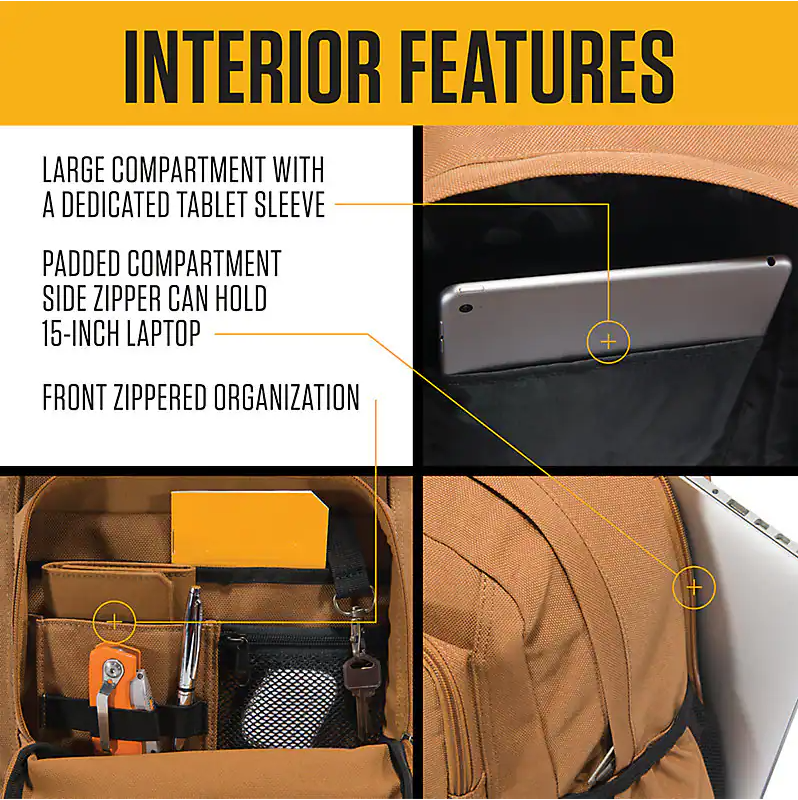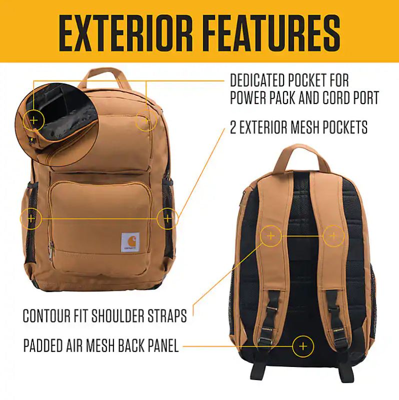 This durable, rain-resistant, 28L Dual-Compartment Backpack comes equipped with sweat-wicking shoulder straps, a padded back panel, and secure storage compartments to keep your gear safe everywhere from the job site to the camp site.