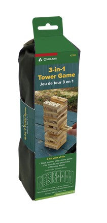 Coghlan's has put a new twist on the classic tower brick game with this 3-in-1 game set. Along with the classic tower game, this set can also be used to play dominoes or a matching game with the symbols printed on the bricks. Game rules included.