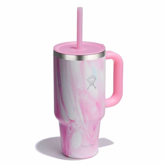 The insulated Hydro Flask 32 oz Travel Tumbler cup is here to hydrate more and refill less. The insulation keeps drinks cold for hours, and the durable handle makes it easy to take along anywhere. The 32 oz size stainless steel tumbler bottle can go anywhere, even fitting most cupholders. Cold stays cold, and the flexible straw is easy to sip any which way.