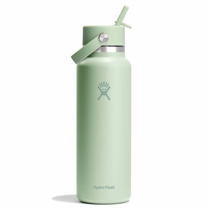A 40 oz Wide Mouth water bottle with our leakproof Flex Straw Cap—easy to fill, easy to drink. Open it up, add your ice, and flip to sip. The insulated stainless steel keeps it cold for up to 24 hours.