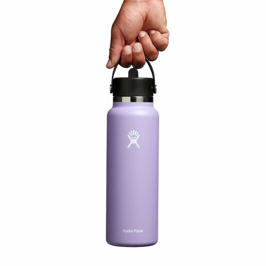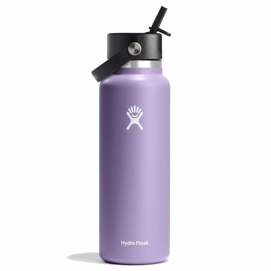A 40 oz Wide Mouth water bottle with our leakproof Flex Straw Cap—easy to fill, easy to drink. Open it up, add your ice, and flip to sip. The insulated stainless steel keeps it cold for up to 24 hours.