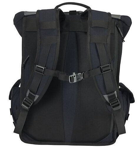 - Large main compartment with roll top closure that can be extended for a bigger load, tension hook closure with built in bottle opener