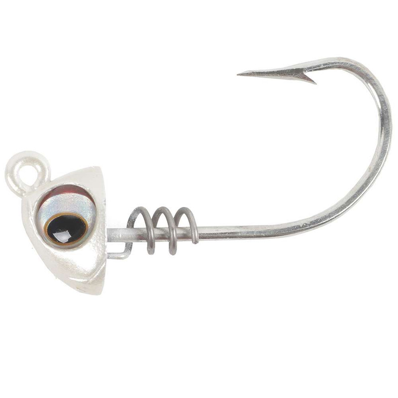 While jig heads are often overlooked in their design and implementation, the No Live Bait Needed (NLBN) Screwlock Jig Heads - 5" Bait were designed to be one of the best on the market. Starting off, each jig head utilizes a short shank 8/0 2X Mustad hook, providing great strength for the hardest fighting fish such as tarpon, striped bass, snook, redfish and more, while also delivering great wear resistance when hitting structure such as rocks, clam beds, and other debris. An oversized stainless-steel screw lock makes securing your soft bait easy, without the need of superglue and truly locks down your bait when getting roughed up by striking fish or strong casts. The head design itself is perfectly balanced to reduce the baits body roll, while oversized 3D eyes deliver great realism and flash. For the angler looking for a performance option to tackle some of the meanest predators we have, these NLBN jig heads deliver to give their paddle tails an uncompromised option with the best components available.