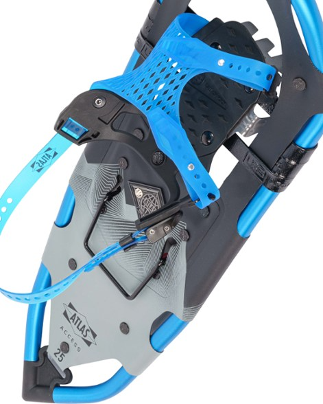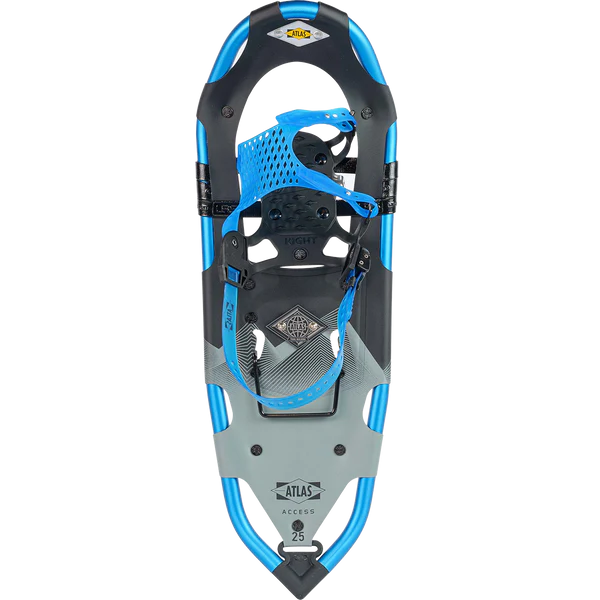 The classic tubular-frame snowshoe in Atlas's Trail Walking category, the Access shines on mellower terrain by making your strides feel as natural and effortless as possible. This is accomplished by the innovative technology behind the Access’s frame and suspension system. The turned-up tail of the V-Frame rolls easily into each step for a smooth gait, while the patented Light-Ride™ Suspension allows your foot to articulate naturally and cushions impact for smooth striding on hikes that are flat or have little elevation change. For the traction needed for a stable snowshoeing experience, the Access features the Twin-Trac™ toe crampon that provides grip in all directions as well as Advanced Aft Traction which integrates the sharp-tipped heel cleat with the heel lift for deeper snow penetration. The intuitive Wrapp™ Stretch binding rounds out the design providing a comfortable and secure fit with a simple and intuitive two-buckle closure allowing for an easy entry and exit.