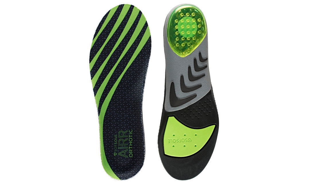 The SofSole® Airr® Orthotic Insole features an encapsulated air chamber in the heel and polymer gel in the forefoot for maximum shock absorption. Combined with a reinforced stability plate in the arch and heel, the Airr® Orthotic enhances motion control and support making it ideal for customers with low to neutral arch types.