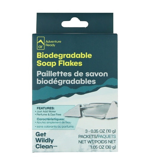 Portable and lightweight, this refill of Adventure Ready Biodegradable Soap Flakes offers a simple and minimalist solution for clean hands in the wild or while traveling.
