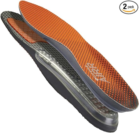- Sof Sole insoles with Skydex air bubbles in the heel and arch to help absorb impact