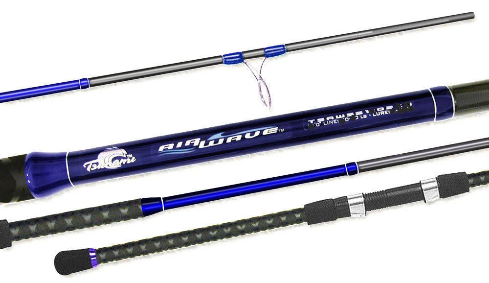 Surf casting is a distance game and Airwave Surf Spinning rods deliver maximum performance in a strong lightweight design. Whether you choose an 8 foot rod for tossing small lures or a 12 foot model to launch a cut bait over the outer bar, Airwave Surf rods are up to the task. High-pressure production techniques, yield powerful high-fiber density graphite blanks with no excess weight. The result is a more sensitive, and lighter weight, high performance rod built for the toughest surf fishing conditions Every Airwave blank provides fast energy recovery to transmit more power to each cast. That means more distance with less effort. If your arms are tired after a day of fishing with Airwave Surf rods...it just means you caught more fish!