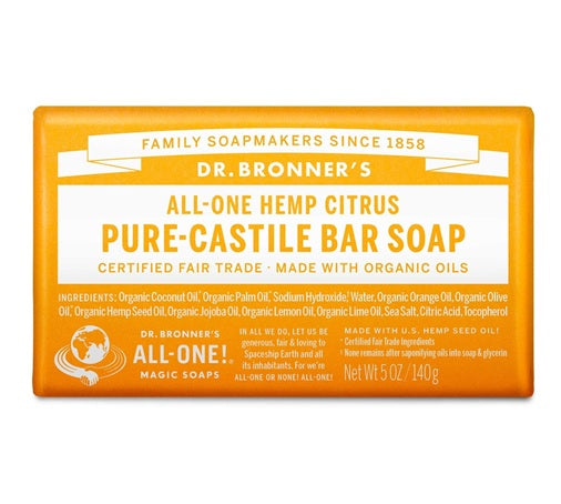 Brighten your day with Dr. Bronner’s Citrus Magic Bar Soap, infused with a vibrant blend of organic orange, lemon, and lime essential oils for a refreshing, uplifting clean. Made with Regenerative Organic Certified® oils, this true soap produces a rich, smooth lather that rinses clean, leaving skin feeling fresh and renewed. No detergents, dyes, or added foaming agents—just pure, plant-powered cleansing with ethically-sourced ingredients. Vegan, Organic, Fair Trade, and EWG Verified for a naturally radiant clean that’s good for you and the planet!