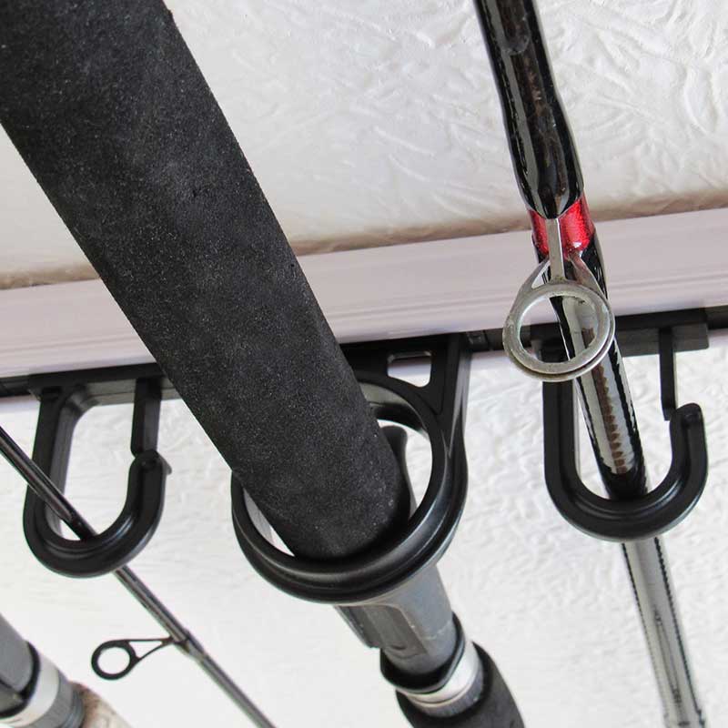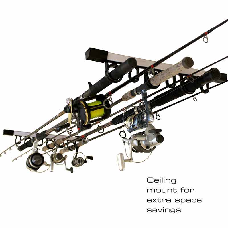 - SPACE AND CONVENIENCE: Organize your rod and reel combos on wall or ceiling with the weather proof material – perfect for home or garage storage