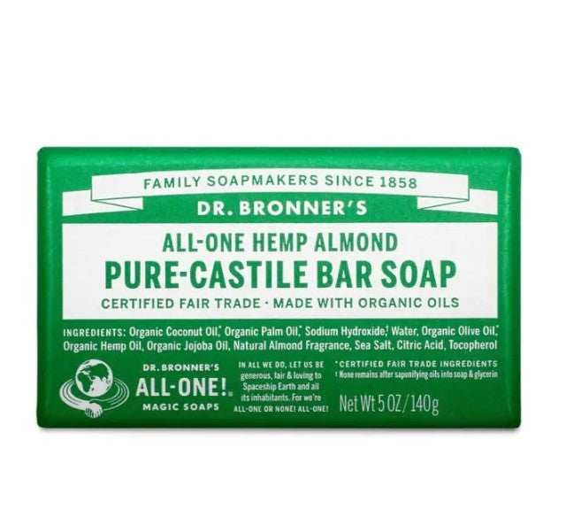 Warm, comforting and slightly sweet & like marzipan or amaretto! Our Almond Pure-Castile Bar Soap is made with certified fair trade ingredients and organic hemp oil for a soft, smooth lather that won't dry your skin. Biodegradable in a 100% post-consumer recycled wrapper.