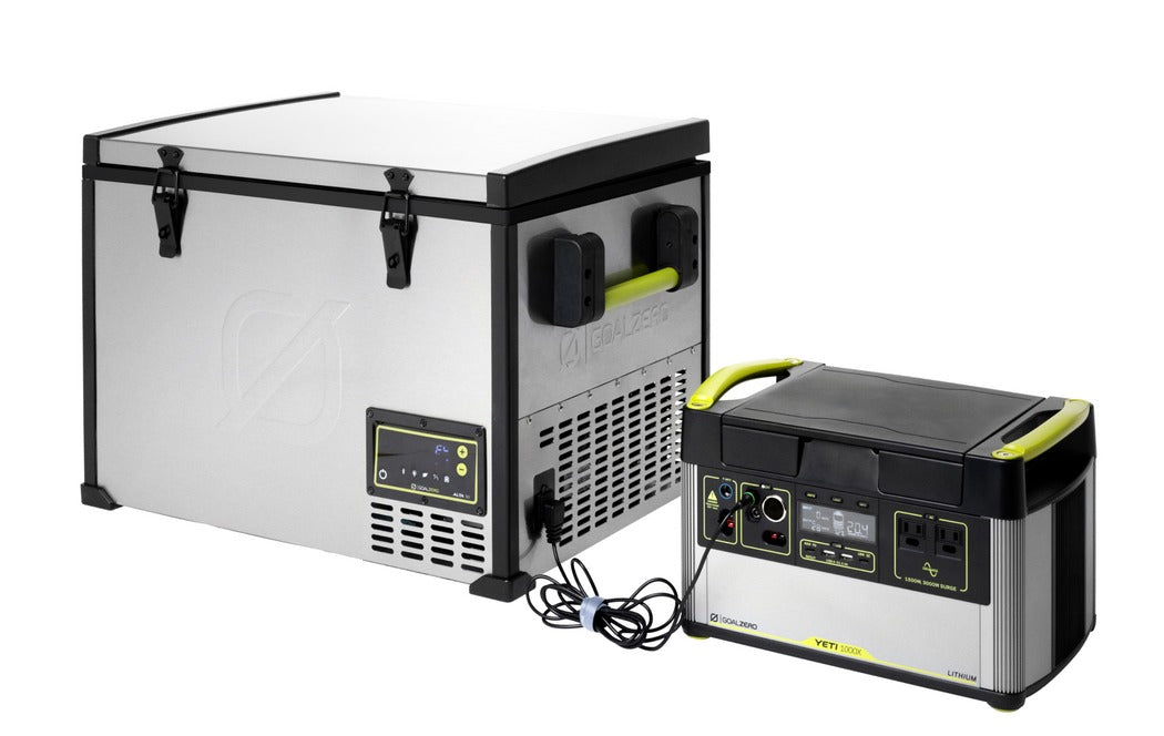 Upgrade your next outing with this convenient portable refrigerator. Temperature settings go as low as -4° F, so you can use it as a fridge or freezer. It also has 53 L of space and can fit up to 75 twelve-ounce cans. Pair the Alta 50 electric cooler with your Yeti power station to keep perishables cold for days. And since the Alta fridges offer class-leading power efficiency, your Yeti can easily keep them running as long as you need.