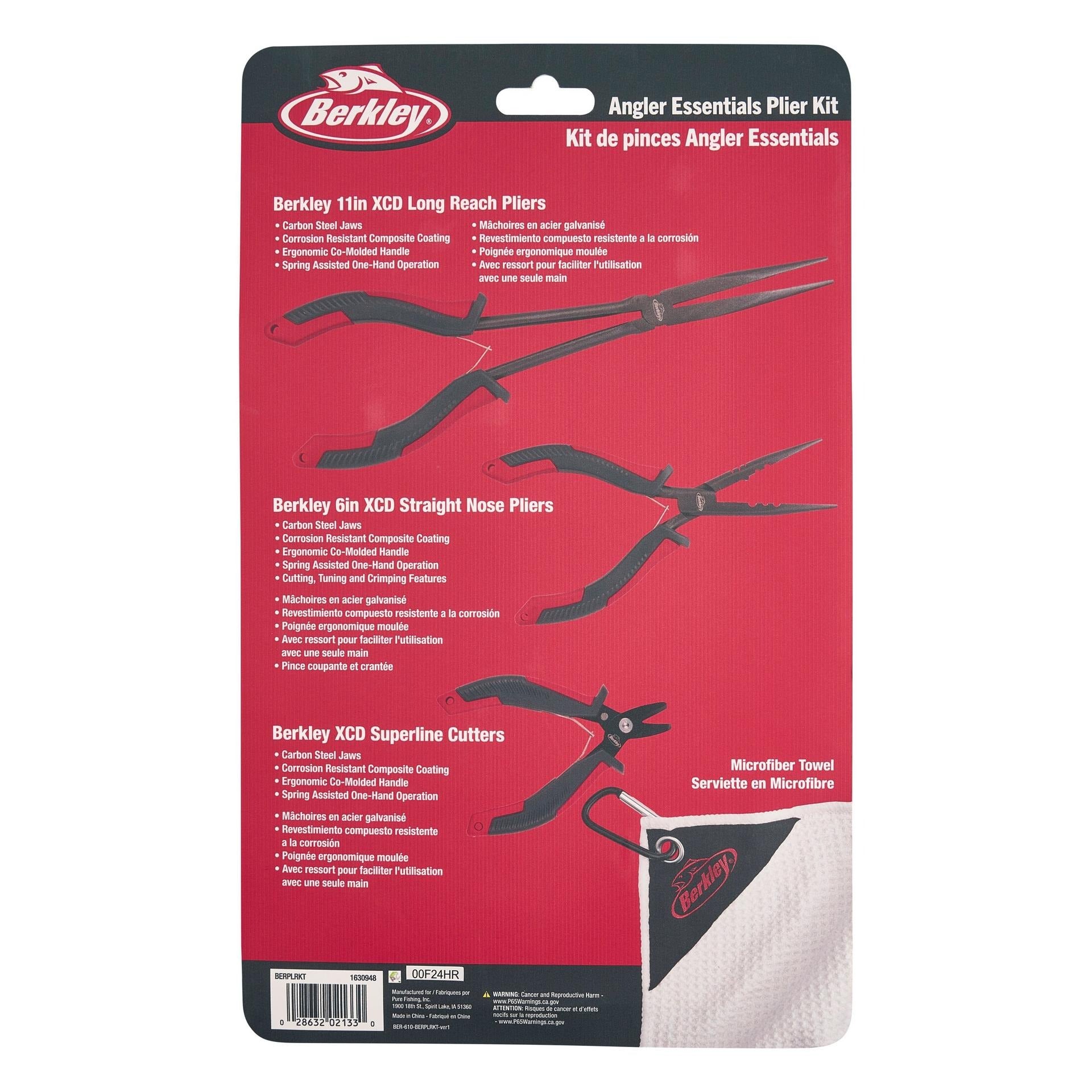 The Berkley Angler Essential Plier Kit gives you the proper pliers to remove hooks/lures that fish inhaled. The 11" XCD Pliers are perfect for toothy critters of any size or for big bucket mouths. The 6" XCD Pliers are perfect for managing tackle or unhooking any deeply hooked fish. The XCD Superline cutters are perfect for any nylon or braided line. All XCD products feature corrosion resistant carbon steel with ergonomic co-molded handles.