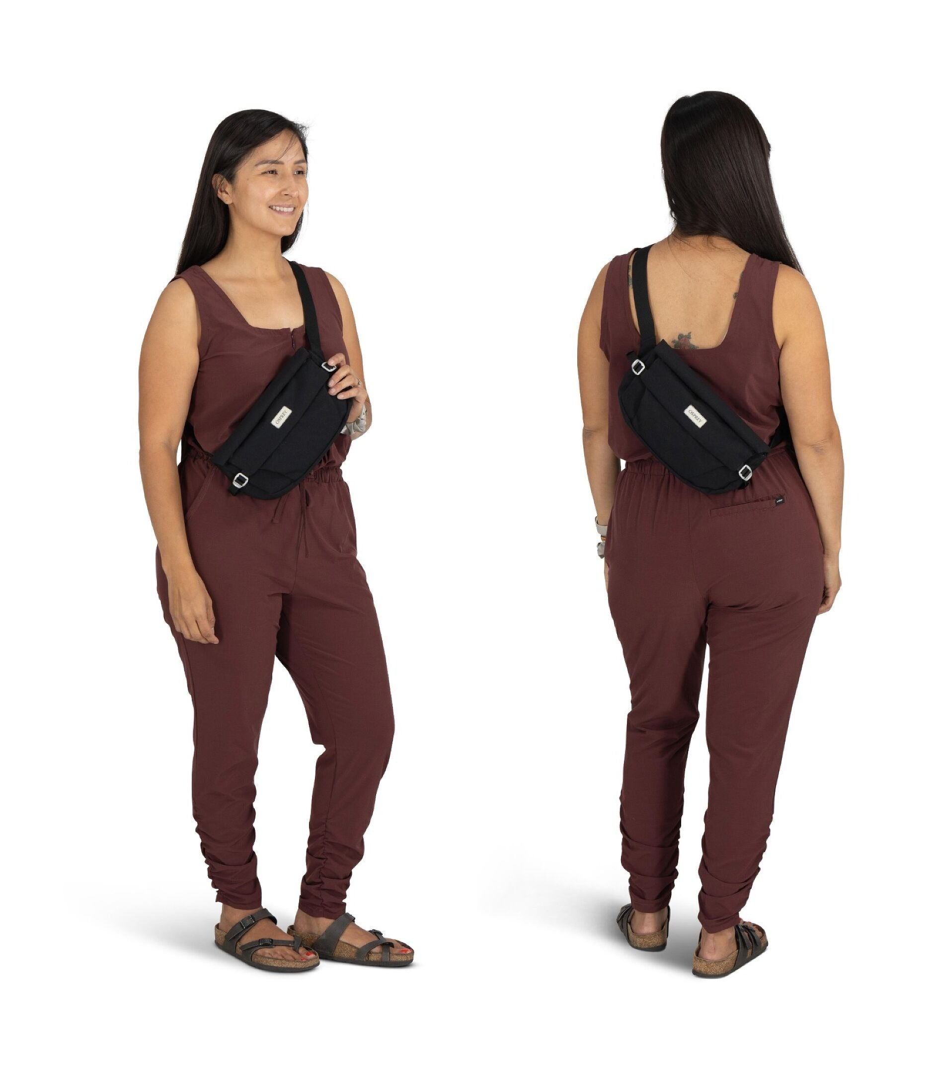 Beautiful, 100% recycled main body fabric and subtle touches set the Osprey Arcane Hip Pack apart. Magnetic closure provides easy access to the main compartment while the internal zip pocket and hidden back zip pocket keep important items secure. Wear it as a hip bag on errands or as a crossbody for a night out; the minimalist, classic style of this functional accessory fits the vibe.