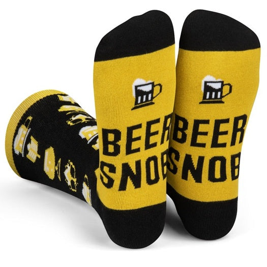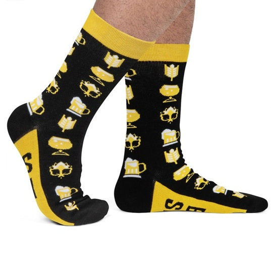 These funny beer socks make the best gift for any beer enthusiast! The stylish design features a sharp pattern of beer bottles, glasses and hops, and has a funny hidden message on the bottom: “Beer Snob”. It's a fun way to show off your passion for beer, and the design fits in whether you’re working at the office, or at home enjoying a cold one.
