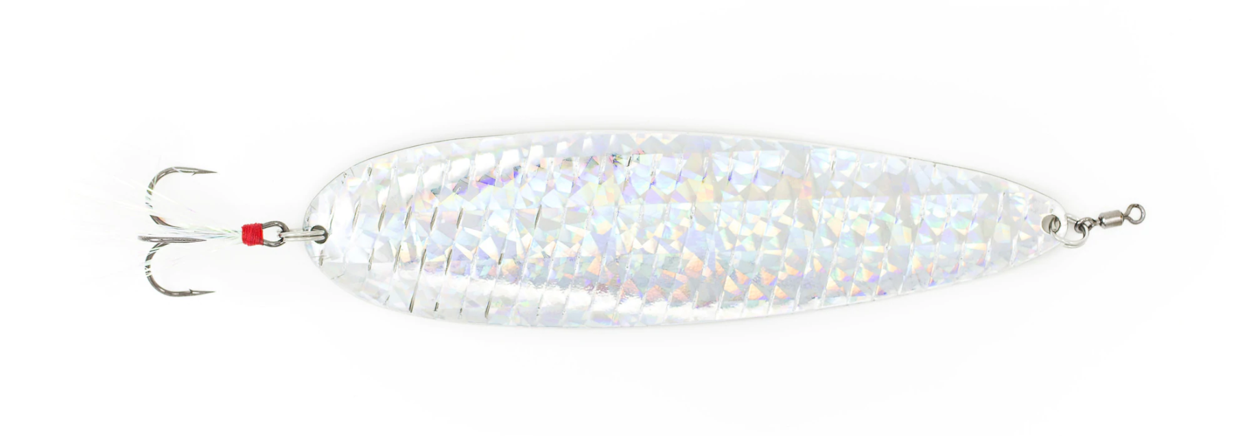 The Original Ben Parker Magnum Spoon is a sure winner. Featuring a premium 3/0 Owner ST-36 Treble tied with Pearl Flashabou, American Made Zinc Worth Split Rings, and finished with a Size 2 Owner Power Swivel at the top, this spoon is ready to fish out of the package!
