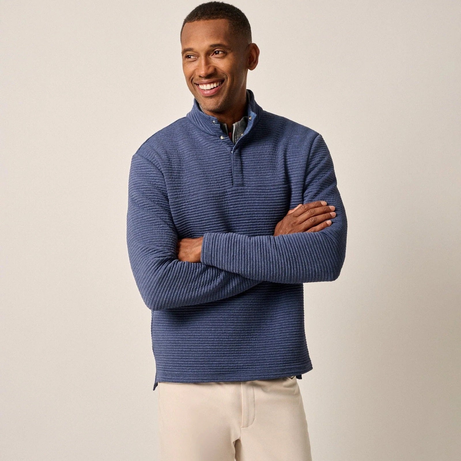 This tech-forward, casual pullover is made with a textured blend of recycled material that looks cool, feels cool and performs like a champ.