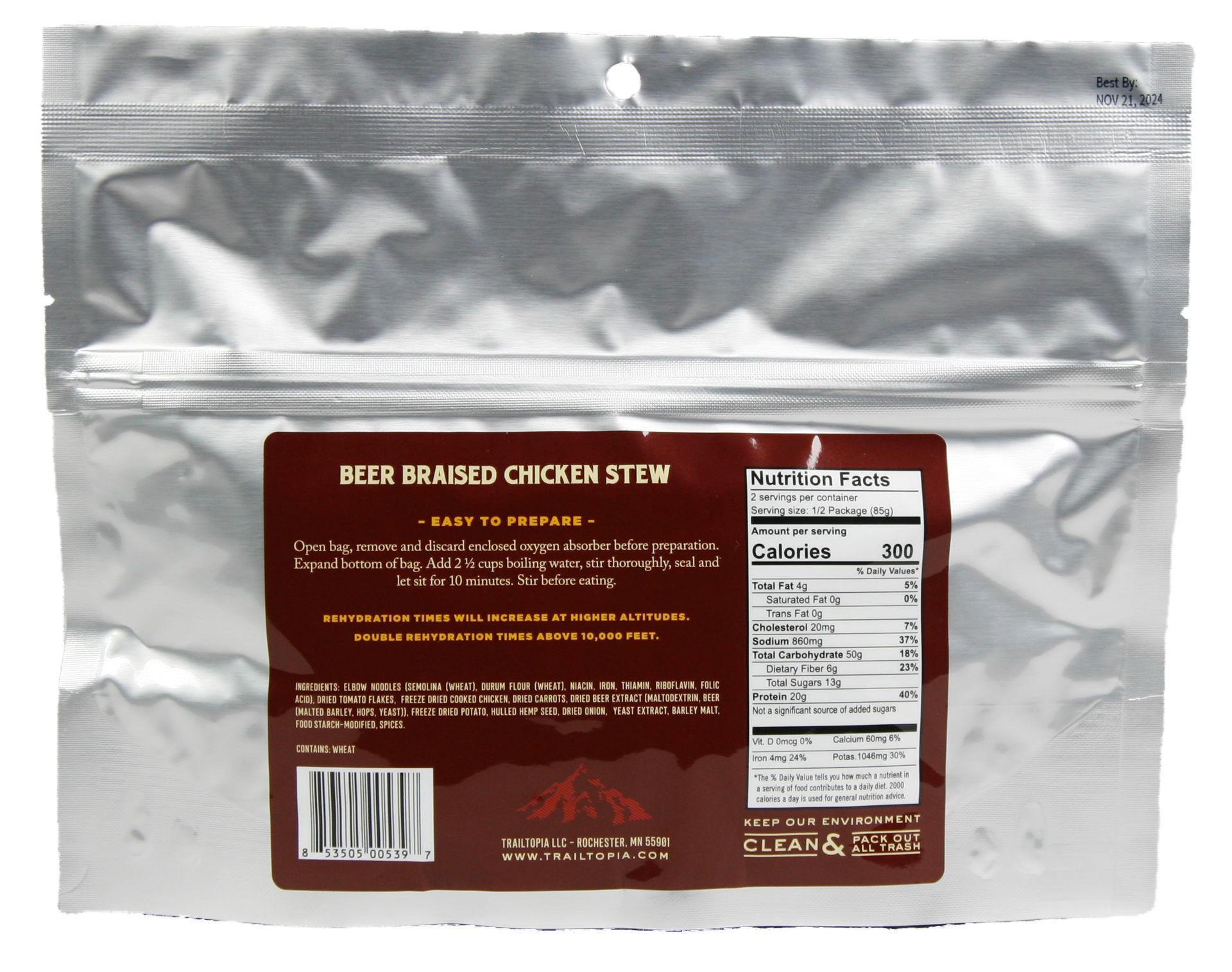 We teamed up with Bent Paddle Brewing Co. from Duluth, Minn. to create a unique stew featuring their ESB Ale and malt. This meal includes all the goods: premium elbow noodles, tomatoes, chicken, carrots, potatoes, hemp seeds, malt, beer extract and our homemade seasoning blend.