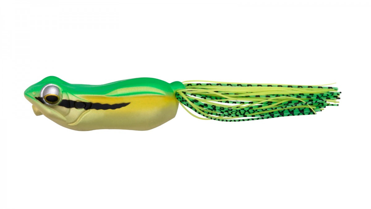 The Megabass Big Gabot Hollow Body Frog features a catamaran mouth to power pinpoint splash-walking action, redesigned weight and internals for improved durability and performance, and a custom hook to dominate monsters in heavy cover. Carefully formulated body material offers optimal balance between structural integrity and compression, delivering unrivaled action and excellent hook-up ratios. Reinforced catamaran mouth bites into the water for splashy pinpoint-walking action to target key pockets between pads and cover. Custom hook shape, wire diameter, and penetration angles guarantee optimal hook-up ratios and improve landing percentages. Finished off with hand-tied skirts and a silicone seal to limit water intake, the Big Gabot will challenge your preconceptions and bring explosive action to your frogging expeditions.