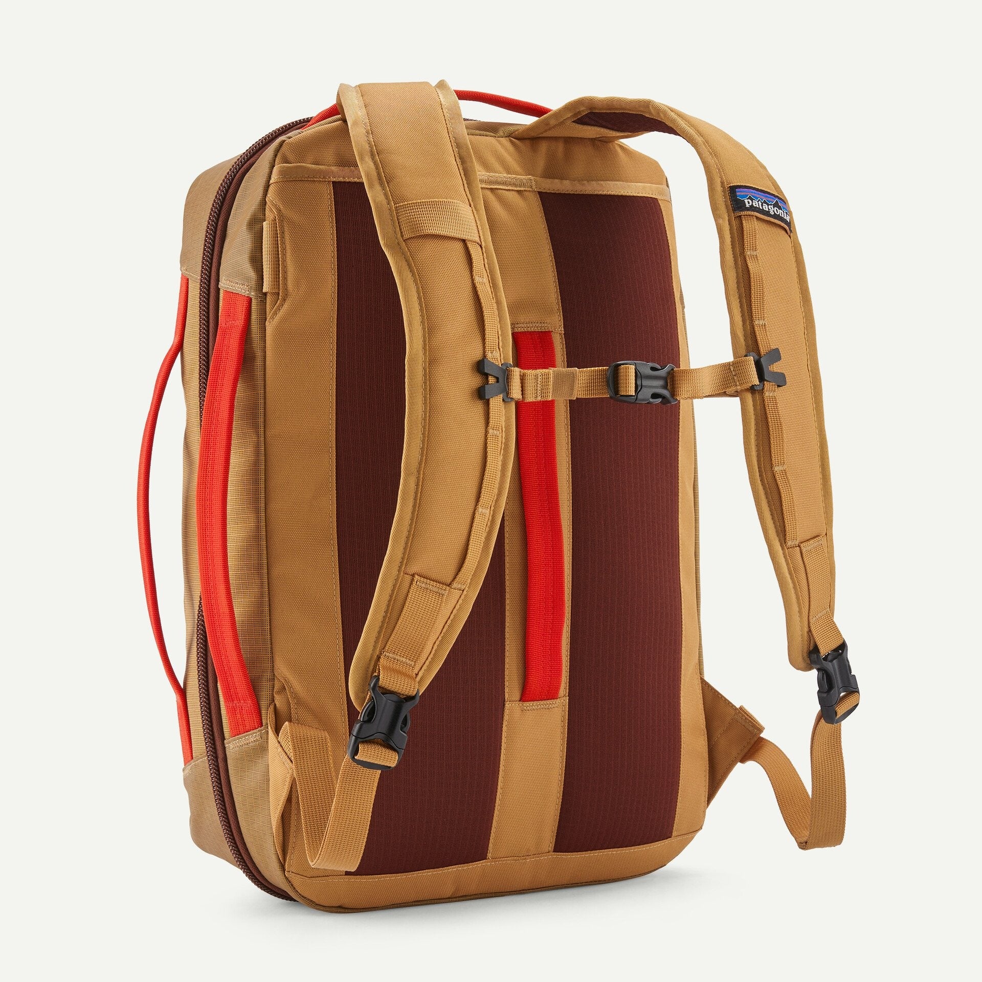 External lash points accommodate even more gear and can be used for other carrying configurations; features a wide webbing loop on the back panel that can be used as a grab handle or slipped over rolling luggage