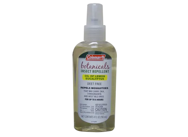 Camp, fish and hike outdoors with Coleman Lemon Eucalyptus Naturally-based DEET Free Insect Repellent Spray. Formulated with oil of lemon eucalyptus (OLE), this naturally occurring mosquito repellent is derived from the leaves of a Lemon Eucalyptus tree and offers protection against mosquitoes for up to 6 hours. It repels insects that may carry Zika, Chikungunya and West Nile Virus. Relax while camping or hiking with lemon eucalyptus insect repellent spray that has a cool, refreshing scent. OLE is the perfect repellent for any outdoor activity and will not harm your watches, fishing line, tents or bedding. The continuous spray format works at any angle for a quick and even application.