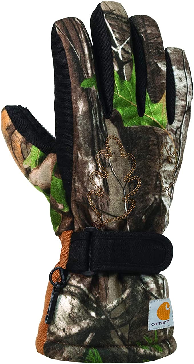 Carhartt quality, in a smaller package- real tree camo with durable, water repellent cotton duck and polytex trim. Digital grip palm and thumb patch